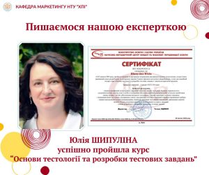 Радісно повідомляємо, що наша колега, д.е.н., проф. Шипуліна Юлія Сергіївна, успішно завершила дистанційний експрес-курс «Основи тестології та розробки тестових завдань» і отримала відповідний сертифікат.