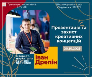 🚀 Вже 30 жовтня 2025 року (четвер) о 10:25 відбудеться заключне заняття в межах серії «Маркетинг майбутнього: глобальні ідеї, творчі підходи й AI-рішення».