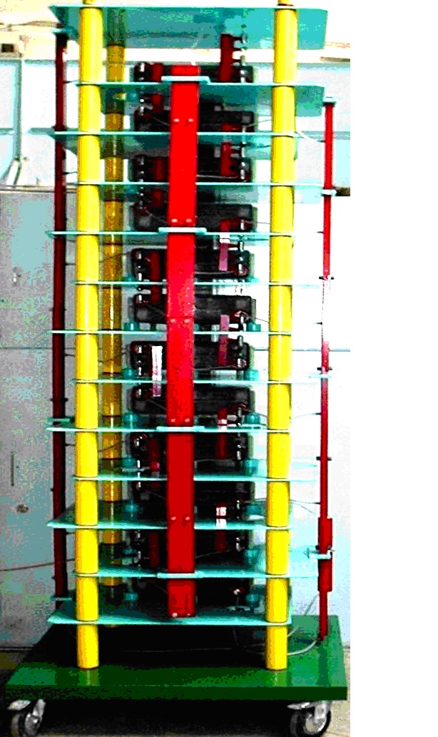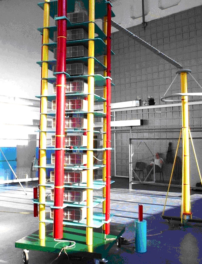 Fig.5. Mobile generator of pulsed voltages GIN-1.2 for the rated voltage of 1.2 MV and stored energy 15 kJ created by employees of EMI department in 2006