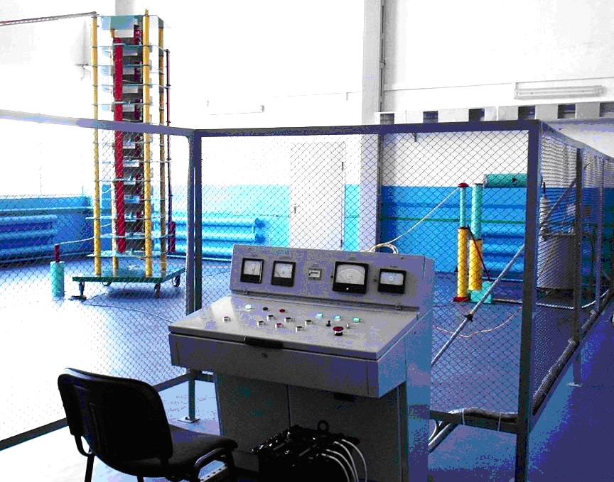 At present the above-mentioned high-voltage testing electric plants of the type of IEMI-10, GINT-1.6-5 and GINT-12-30 situated at the experimental base of the institute that became an object of national heritage of Ukraine in 1999 not only are maintained in the working condition but are also modernized in some respects by efforts of the employees of department of EMI. Thus, over a period of 2011-2012 on the basis of high-voltage objects and generator GINT-4/1 of testing complex IEMI-10, for the needs of domestic power industry, a prototype of the unique plant for formation, according to the requirements of effective intergovernmental GOST 1516.2-97, of standard aperiodic switching voltage pulse with the following technical characteristics: voltage pulse rise time =(250±50) μs; voltage pulse half-decay time =(2500±750) μs, maximal value of pulse voltage =(2±0.2) MV; electric load equivalent – air gap “rod-plane” 5m length was created.