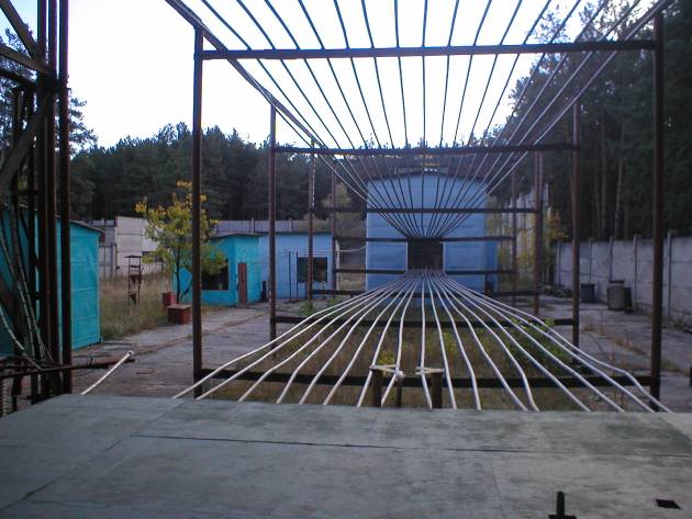 Fig.3. External appearance of domestic large-size high-voltage testing electrophysical plant GINT-12-30 (photo of 2008, performance data of electromagnetic fields generated by this unique plant are given in attached Table 1)