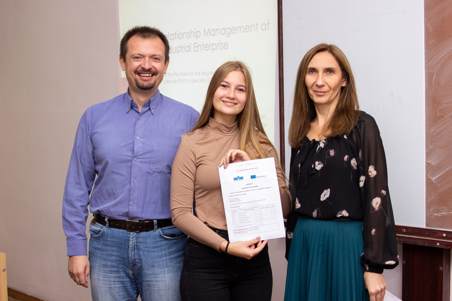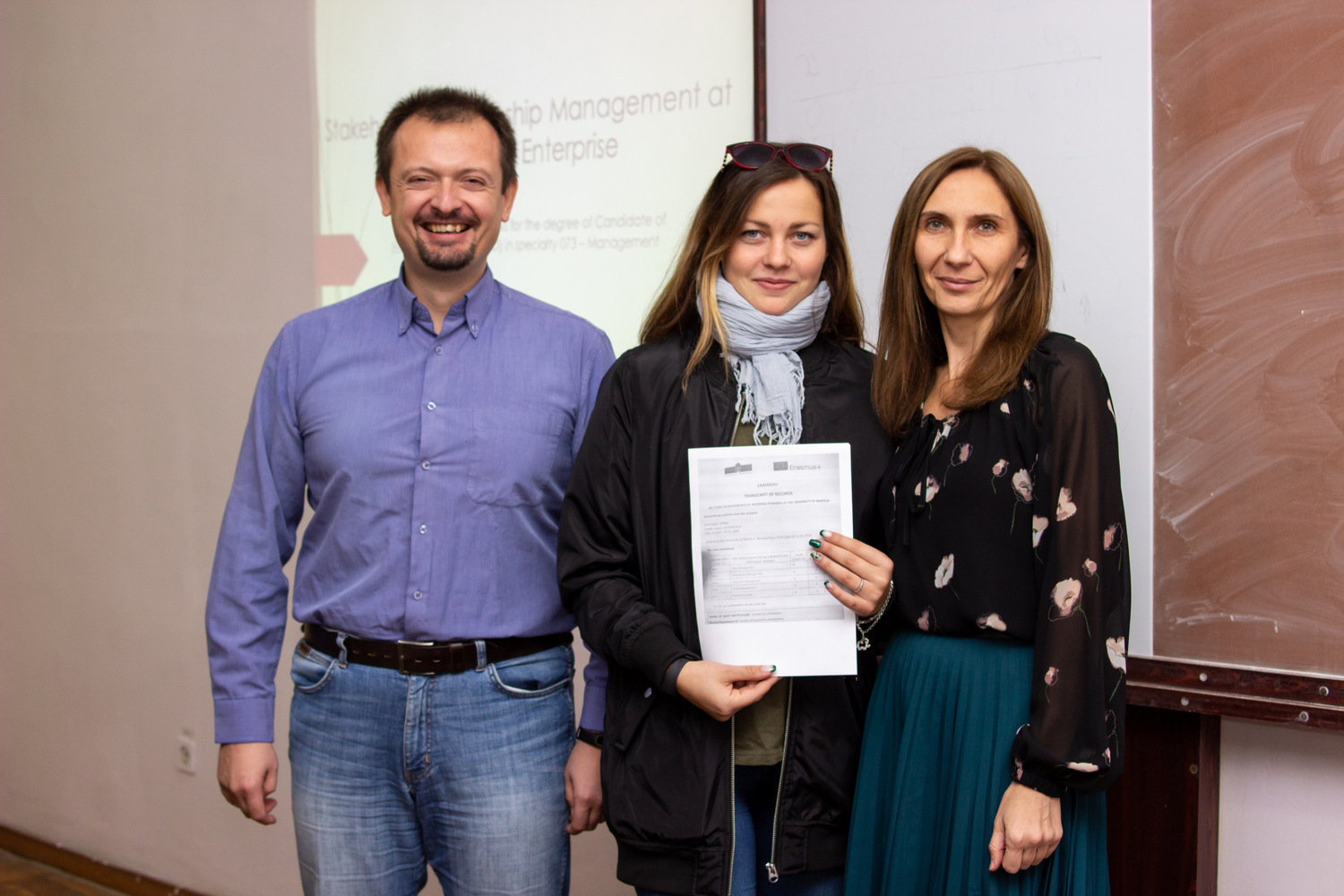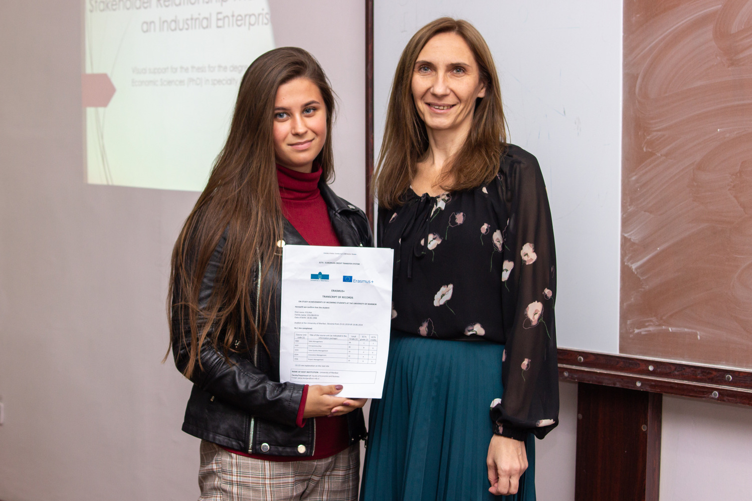 Ірина Алєксєєва, Поліна Волобуєва, Марія Дегтяр, Марія Сидренок та Лоліта Русанова , яких було направлено в рамках програми Еразмус+ кафедрою менеджменту та оподаткування у весняному семестрі 2018/2019 року до Університету Марібору (Марібор, Словенія) та Університету Сапіенца (Рим, Італія), нарешті отримали свої сертифікати успішності!