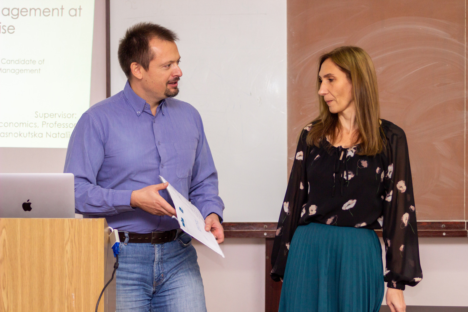 Урочисто вручили студенткам документи, що надійшли з закордонних вишів, завідувач кафедри професор Наталія Краснокутська та доцент Павло Брінь.