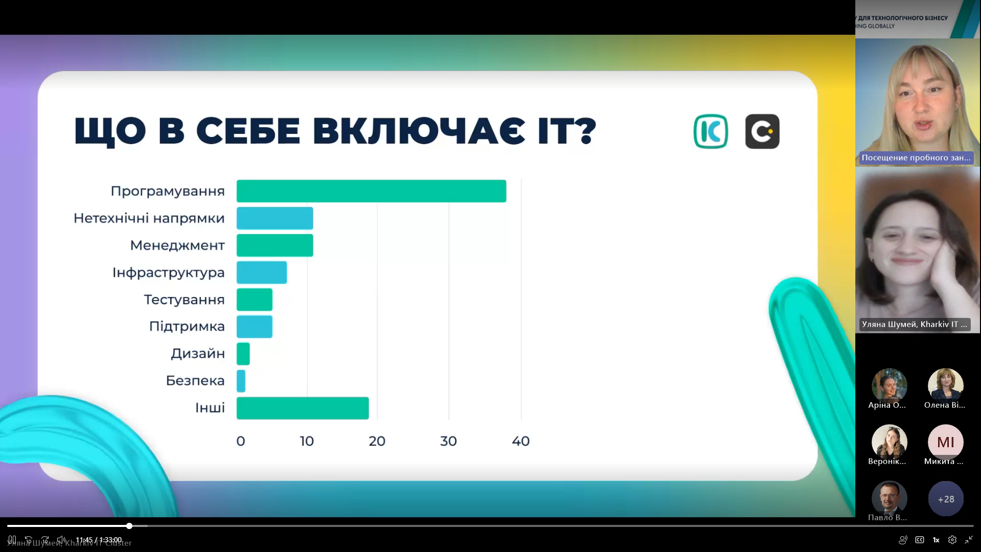 «Харківський ІТ Кластер нещодавно презентував оновлені матриці компетентностей Junior-фахівців, за 10-ма найактуальнішими напрямками на ІТ-ринку, а саме: QA, JavaScript, Python, Java, Графічний дизайн, UI/UX, Project Manager, 3d-artist, DevOps, Кібербезпека» – наголосила Олена Лоєнко.