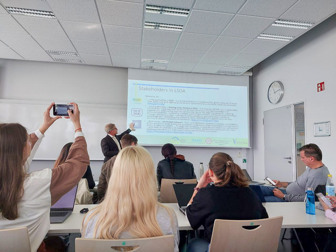 Протягом першого тижня спільного навчання в літній школі “Building sustainable economies after the crisis” в Райн-Ваальському університеті прикладних наук (Німеччина) учасники школи не тільки обирали челенджі та створювали команди, але і слухали лекції та інпути від провідних професорів обох університетів (доц., к.е.н Олени Прохоренко; проф., д.е.н. Наталії Краснокутської; проф., к.е.н. Павла Бріня; проф., к.е.н. Тараса Данька; доц., к.е.н. Наталії Ширяєвої; доц., к.е.н. Олени Чайкової; доц., к.е.н. Ірини Сітак; Prof. Dr. Philipp Schorn, Prof. Dr. Jacob Lempp, Prof. Dr. Habil. Gregor van der Beek, Prof. Dr. Oliver Serfling, Prof. Dr. Klaus Krumme, Prof. Dr. Jan-Hendrik Kamlage, Prof. Dr. Wögen Tadsen).