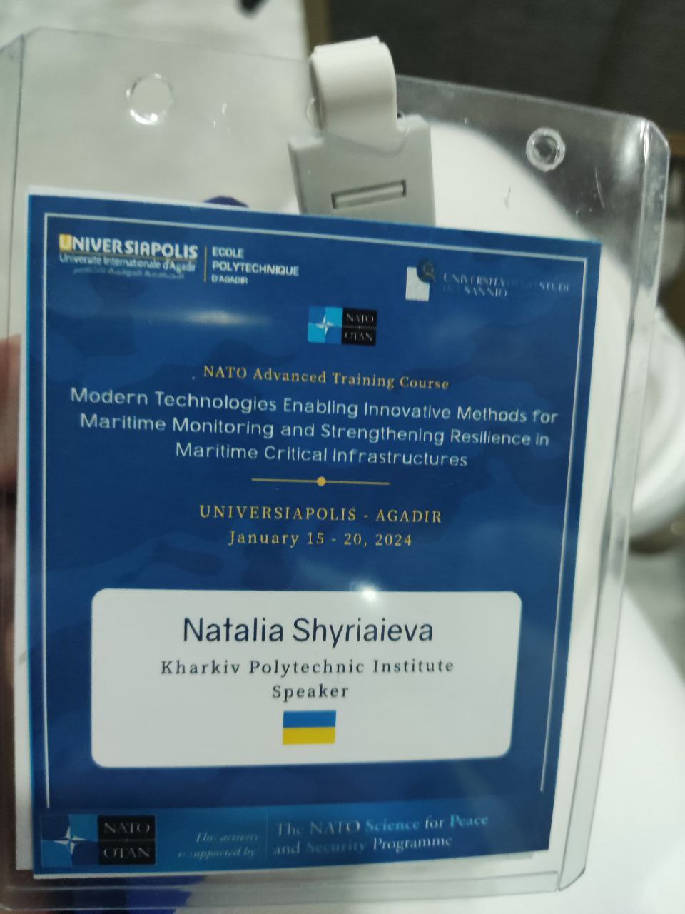 Довідка: Захід організовано за підтримки NATO. Організатори заходу: University of Sannio (Italy), Universiapolis Université Internationale d’Agadir (Morocco), École Polytechnique d’Agadir (Morocco). З більш детальною інформацією щодо заходу можна ознайомитись за посиланнями: https://www.atcnato-universiapolis.com/event-programme, https://universiapolis.ma/universiapolis-organise-nato-advanced-training-course/