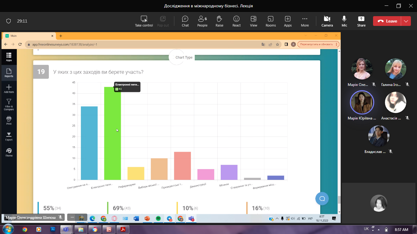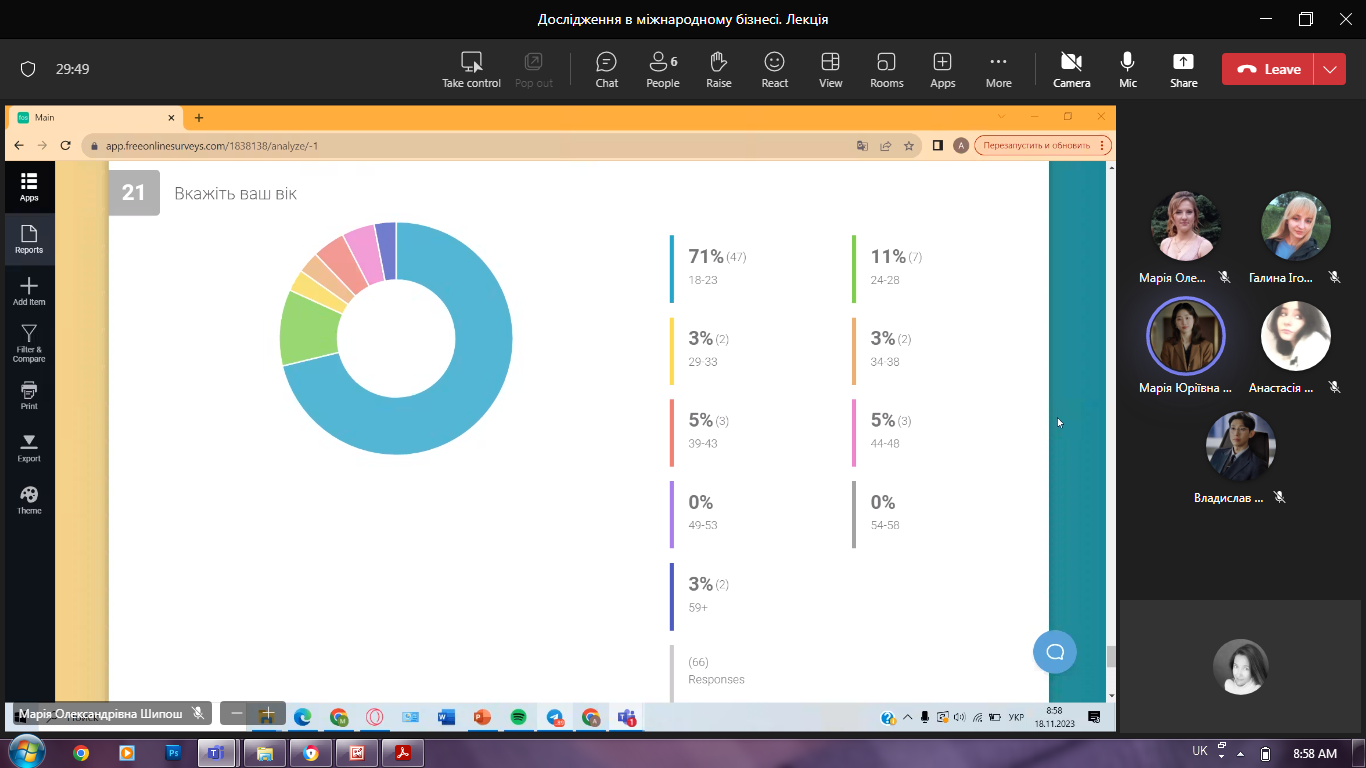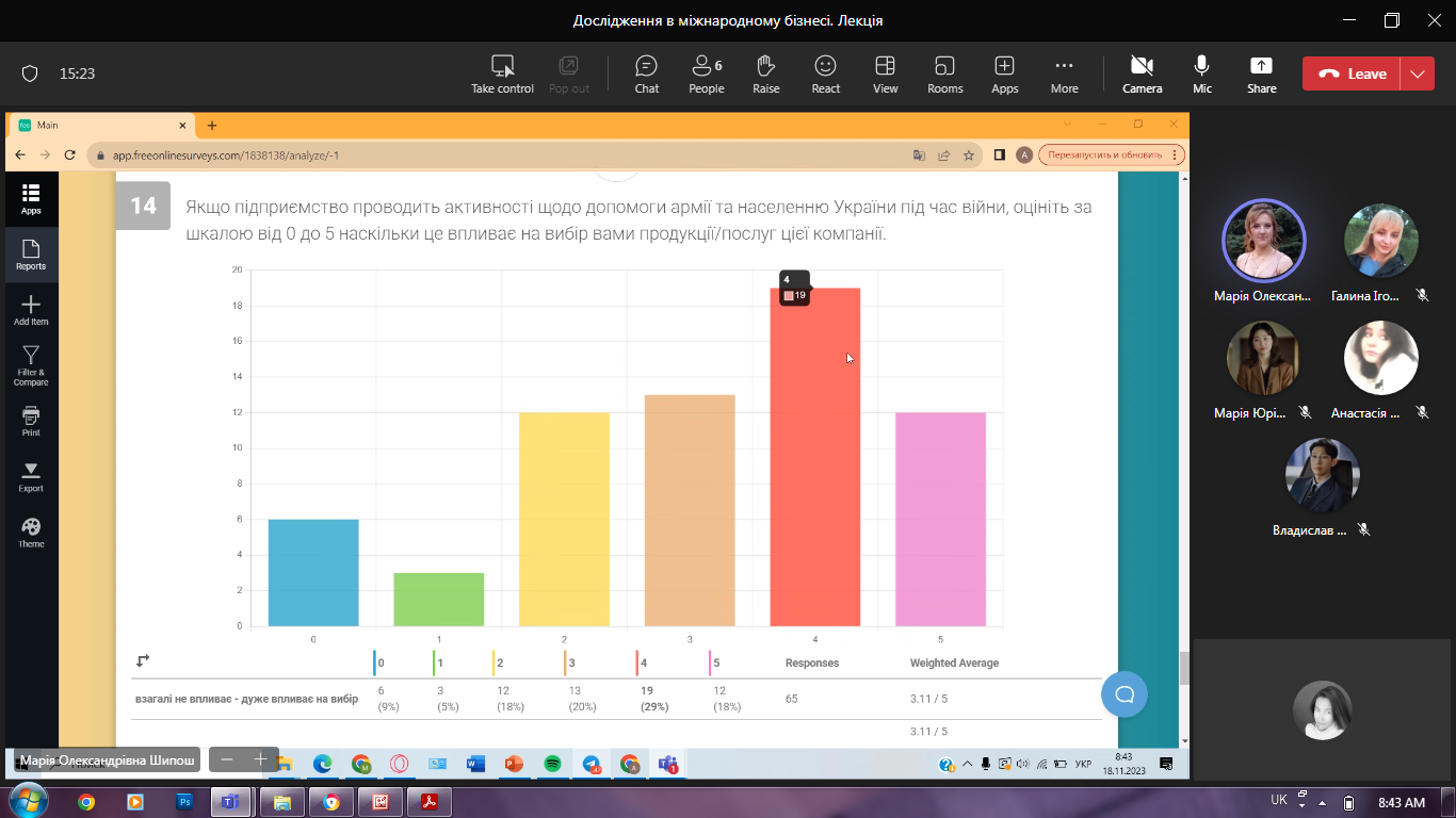 В рамках курсу «Дослідження в міжнародному бізнесі» (лектор Аліна Зубкова, к.е.н, доцент кафедри менеджменту) студенти третього курсу самостійно провели емпіричне дослідження та розробили опитування за допомогою online сервісу. Саме так студенти Марія Калашник, Владислав Пальчиков, Анастасія Меркотун, Галина Суханова та Марія Шипош описали, що робили під час проєкту: