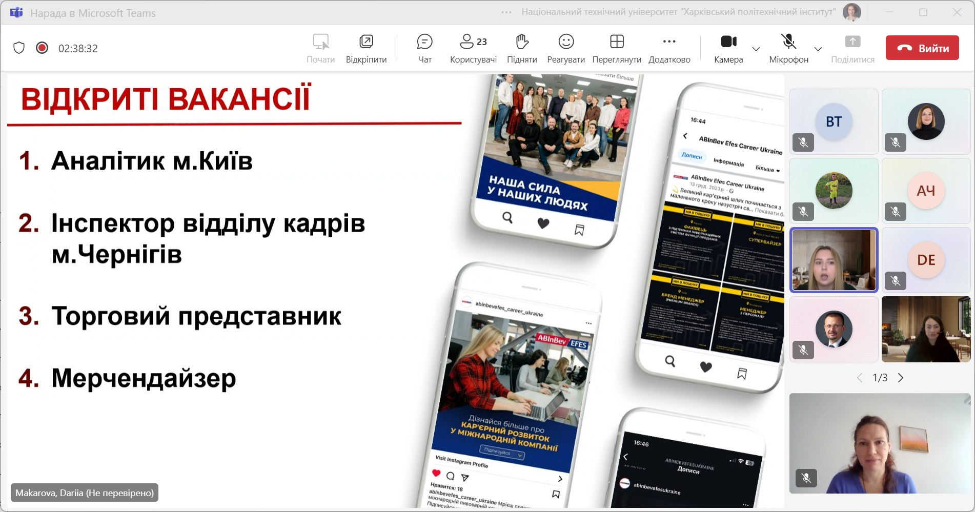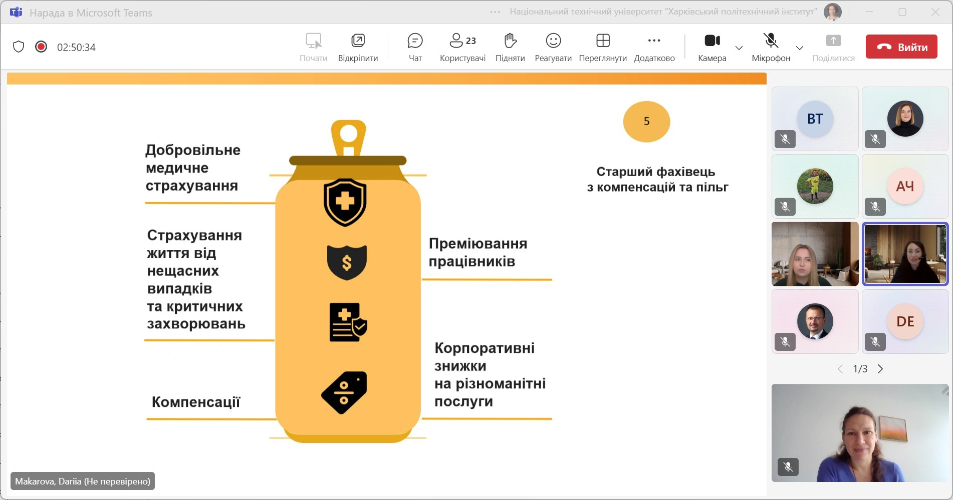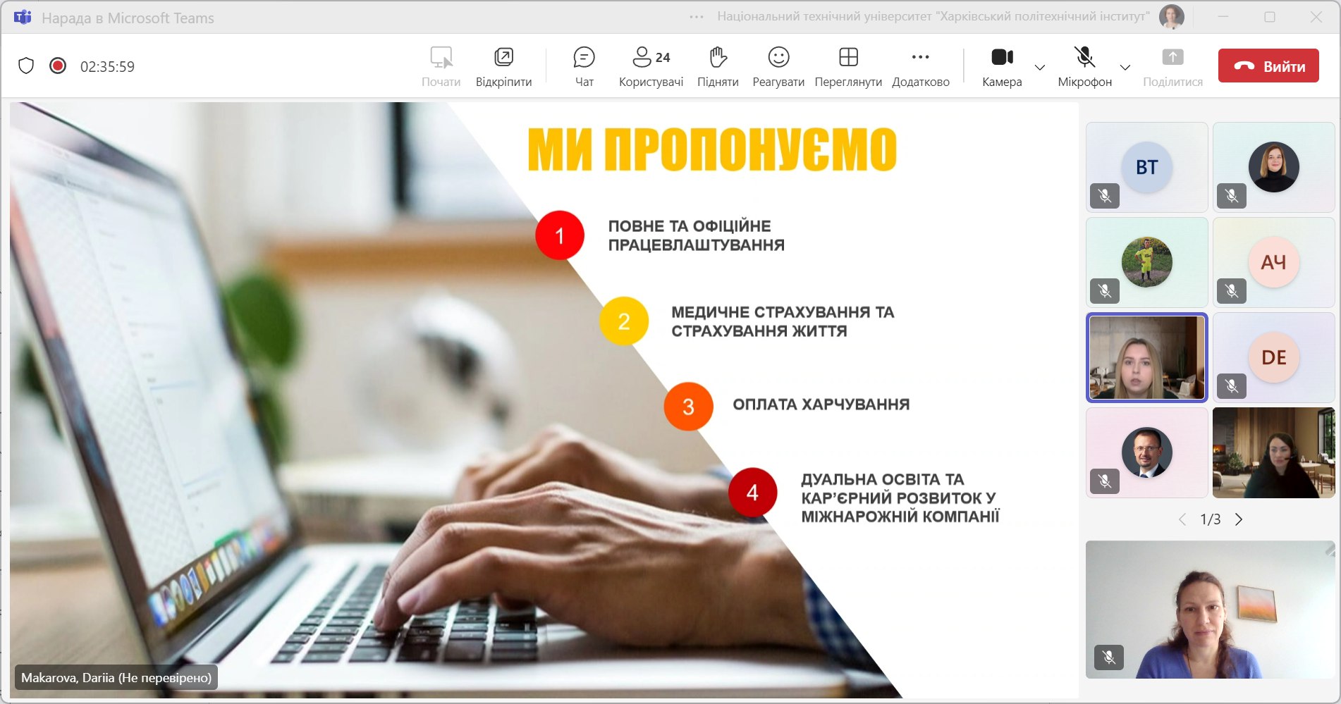 Сьогодні спікерами були Дарія Макарова, керівник напрямку підбору персоналу, і Юлія Семеніхіна, старший фахівець з компенсацій і пільг.