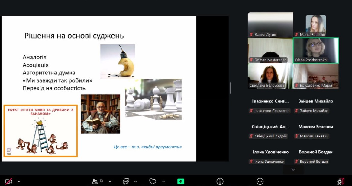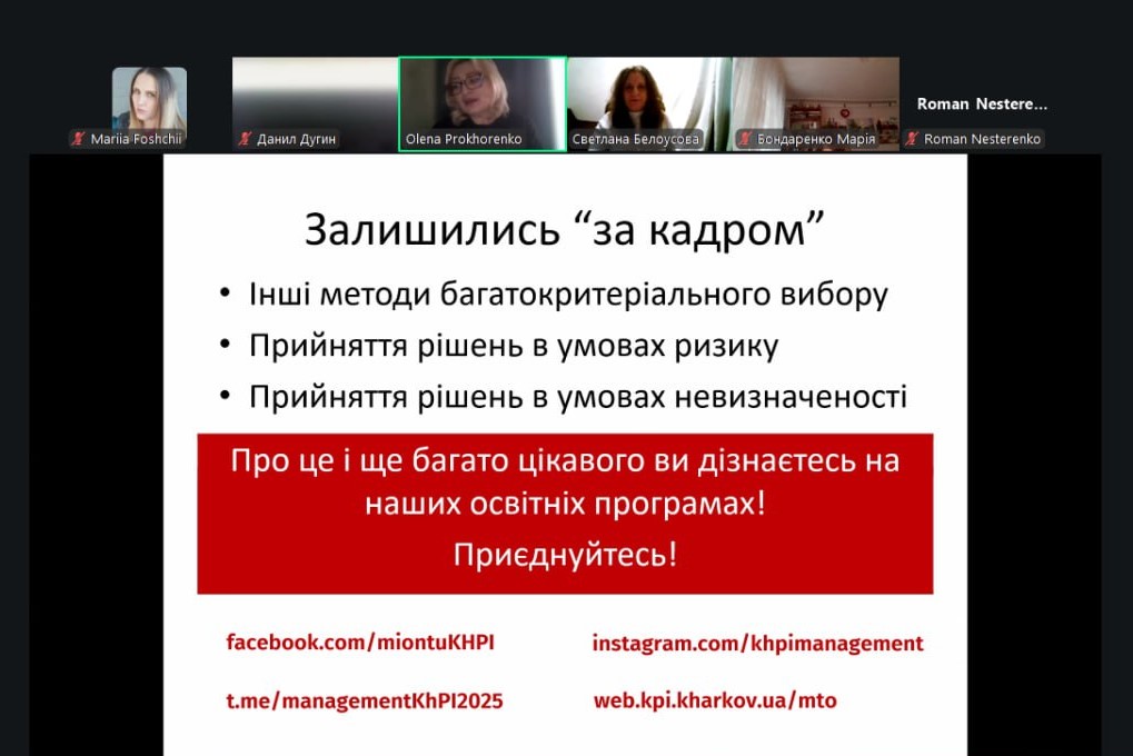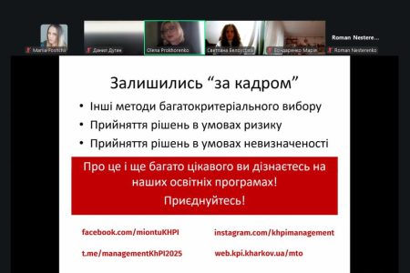 Учні дізнались про принципи раціонального прийняття рішень, що таке “нуль-альтернатива”, чому деякі аргументи є хибними, які існують критерії та обмеження, а також як вчинити, коли критеріїв прийняття рішень виявляється багато. Наших потенційних здобувачів цікавило, звідки саме береться інформація для навчальних курсів,  які існують можливості набуття практичного досвіду, тому ми з радістю поділились можливостями, особливостями та проєктами нашої кафедри.
