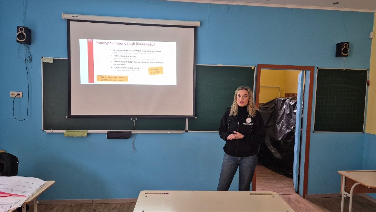 25 березня 2026 року завідувачка кафедри менеджменту НТУ «ХПІ», д.е.н., проф. Наталія Шматько та доцентка кафедри менеджменту, Ph.D. Оксана Ходирєва провели профорієнтаційний захід для учнів 11 класів Харківського ліцею «Авторська школа Бойка».
