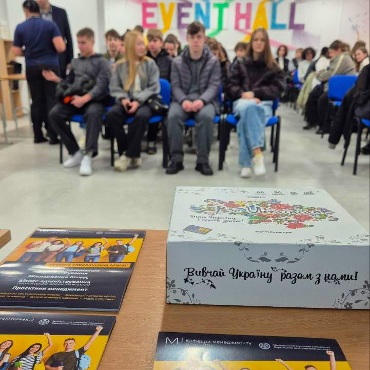 Кафедру менеджменту представила доцентка Оксана Ходирєва, яка презентувала освітні програми кафедри, розповіла про сучасні напрями підготовки фахівців у сфері менеджменту, можливості навчання та професійного розвитку студентів.