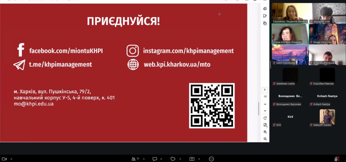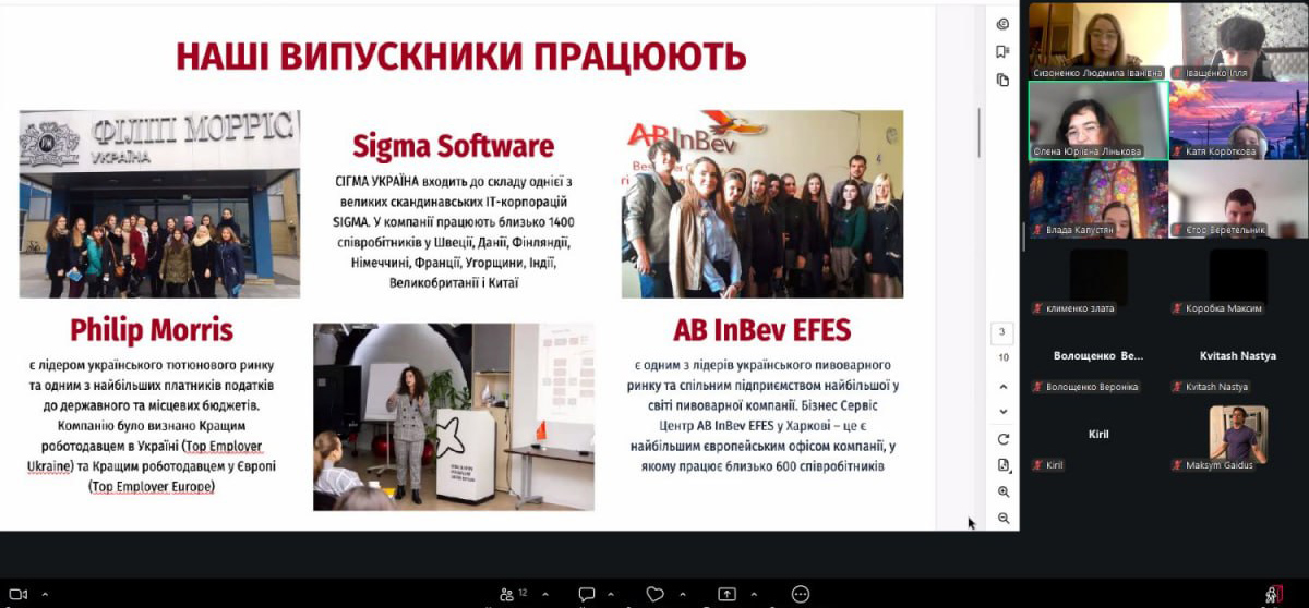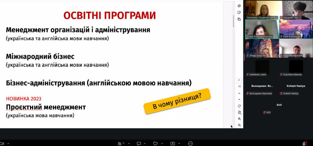 17 квітня 2026 року доцент кафедри менеджменту Олена Лінькова провела профорієнтаційну онлайн-зустріч з учнями Харківського ліцею № 11 імені Данила Дідіка.