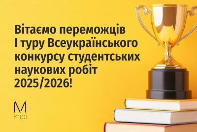 У березні 2026 року в НТУ «ХПІ» були підбиті підсумки І туру Всеукраїнського конкурсу студентських наукових робіт з галузей знань та спеціальностей у 2025-2026 навчальному році (наказ №103 ОД від 17.03.2026). Загалом конкурсною комісією було розглянуто 195 робіт здобувачів. До Читати далі →