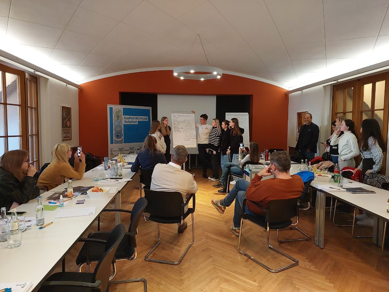 We continue to report on joint training at the Summer School “Building Sustainable Economies after the Crisis” at the Rhine-Waal University of Applied Sciences (Germany). The second week started with an excursion to the logistics company DeltaPort in Wessel (Germany), which is an association of Rhine-Lippe Port, City Port Wessel, and Port of Emmersum.
