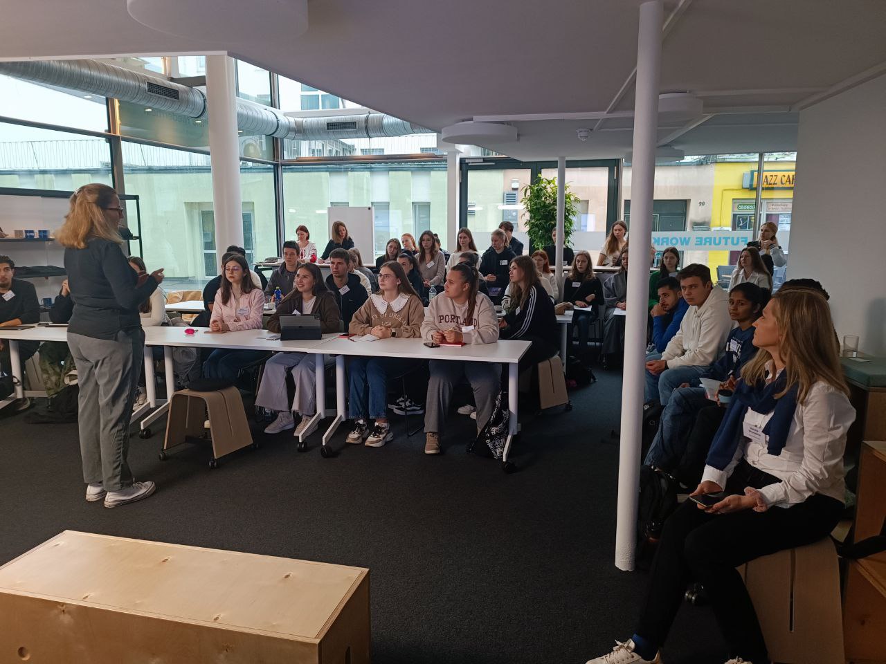 The participants also had an exciting team-building activity organized by Judith Collier, Dipl.-Kff. (FH), a lecturer at the Hochschule Niederrhein University of Applied Sciences, and were divided into groups to work on a partner company case. Representatives of the company familiarized the participants with their products and details of the case, the results of which will be presented by the students in a week.