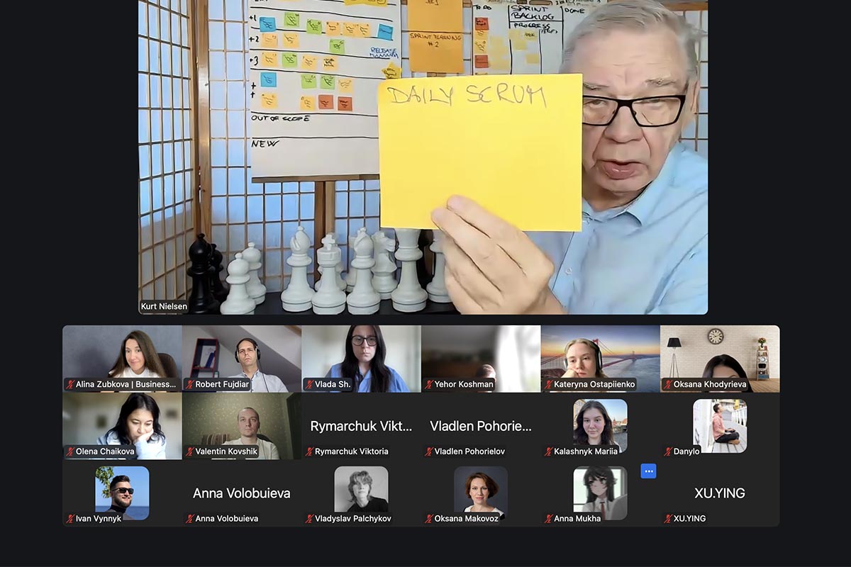 Last week, the final session in the Scrum Master training for the students and lecturers of the Department of Management of NTU “KhPI” was conducted by AgileLeanHouse A/S (Denmark). During the training, the department’s faculty and students had the unique opportunity to learn Agile project management techniques under the excellent coaching of Kurt Nielsen and Robert Fujdiar.