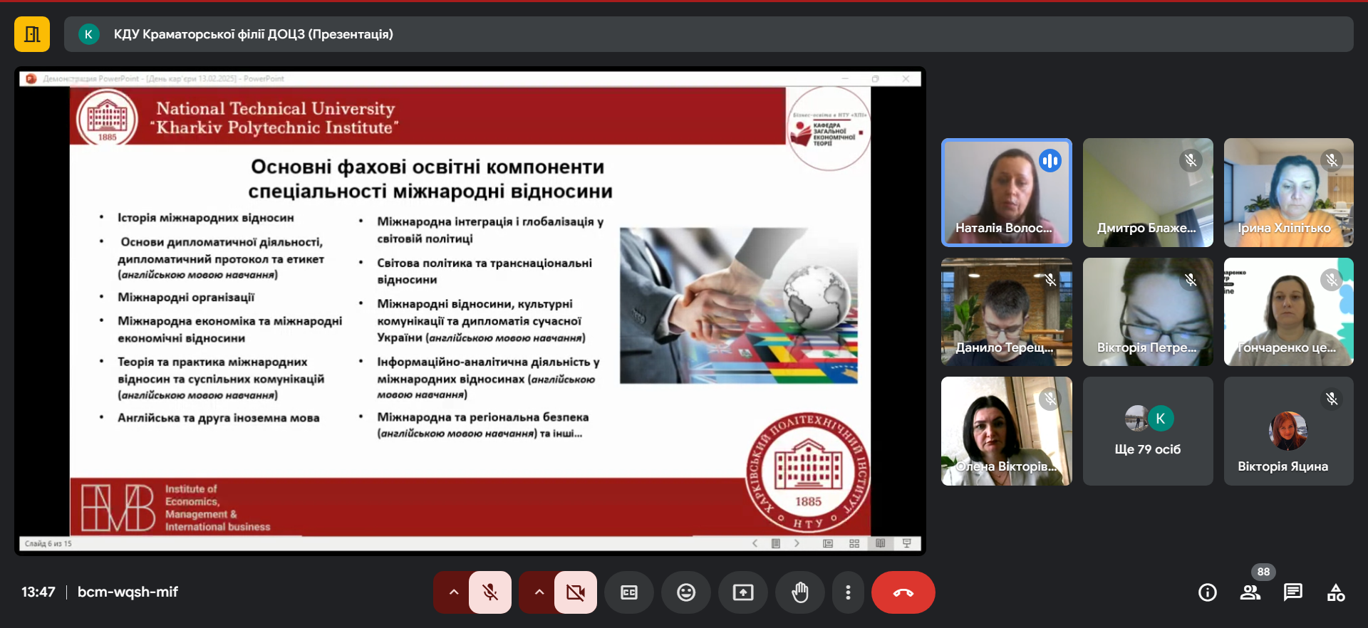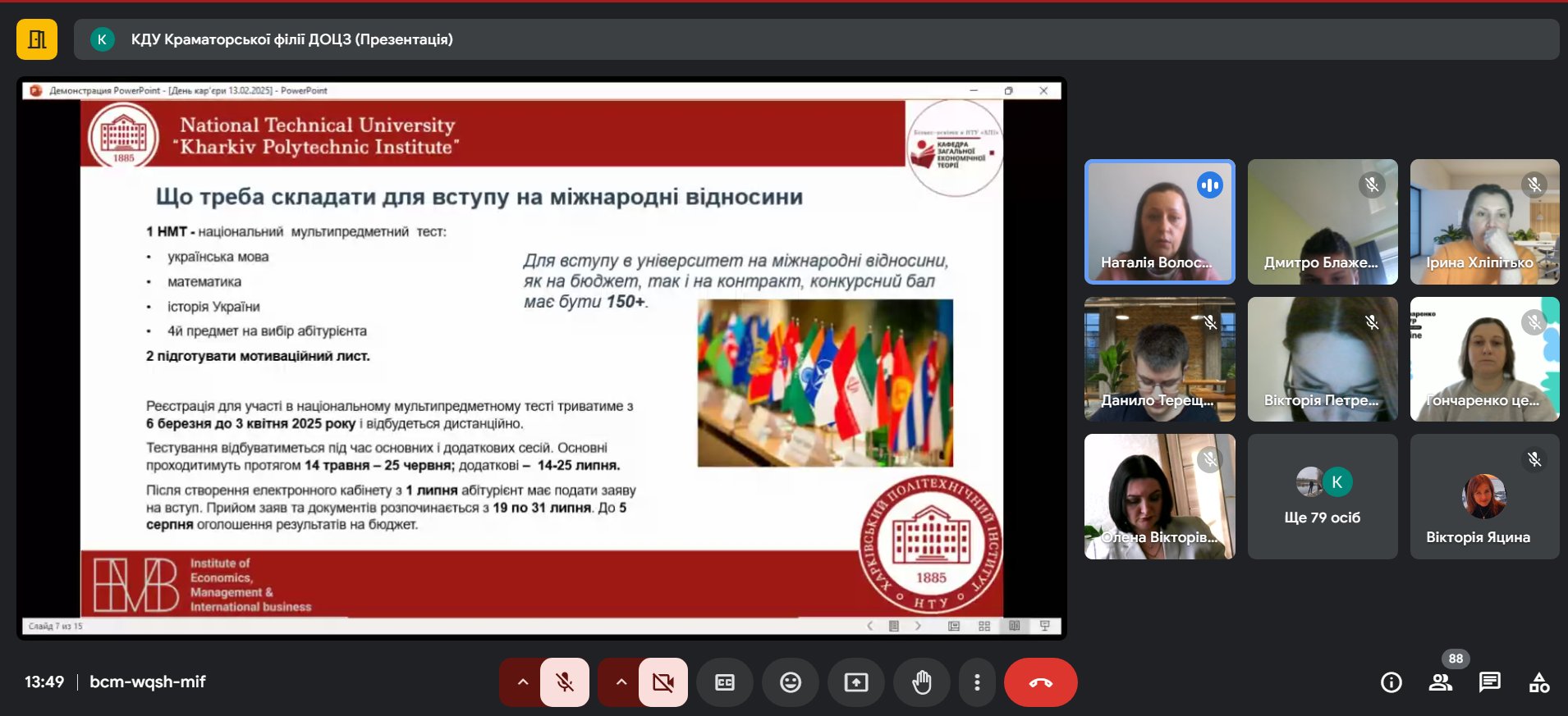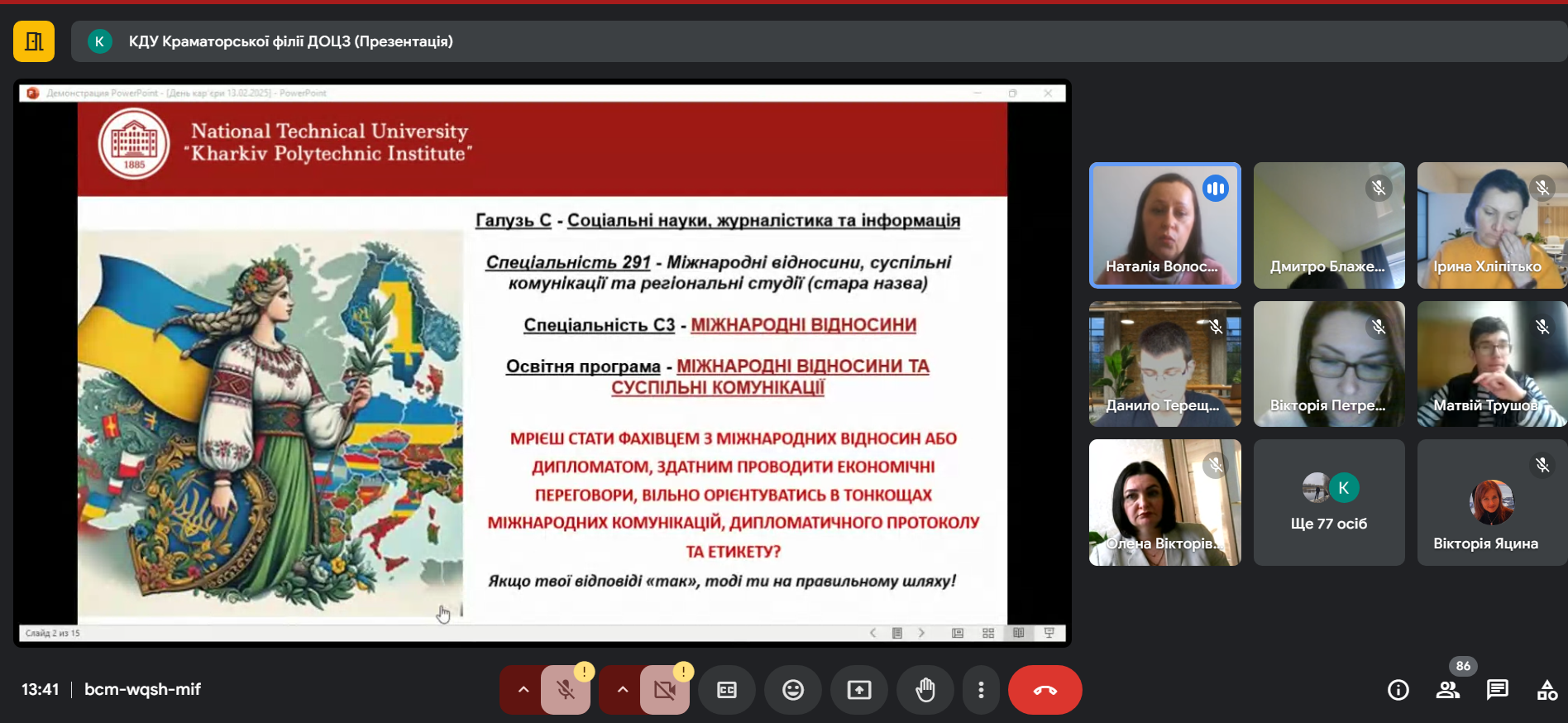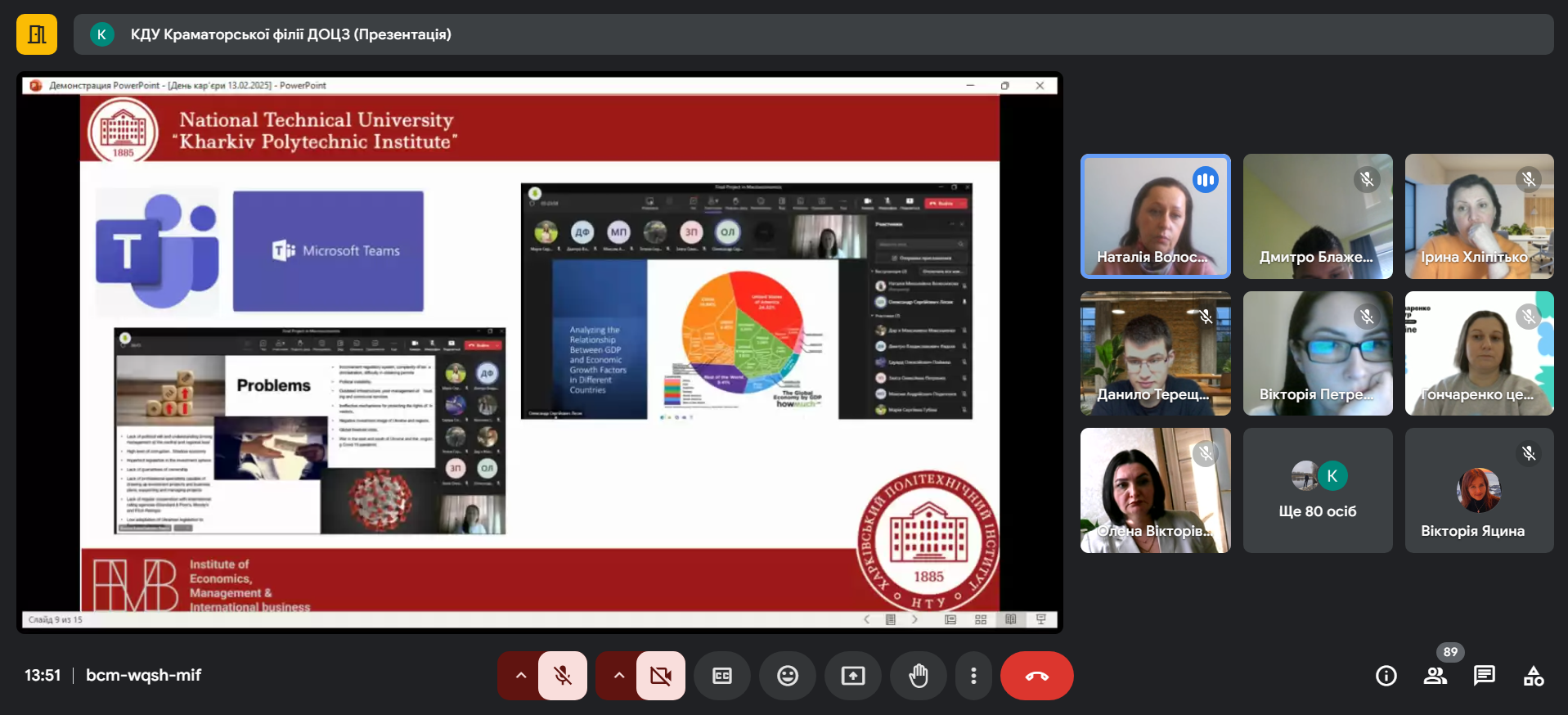 13 лютого 2025 року завідувачка кафедри загальної економічної теорії Наталія Волоснікова та доцент кафедри Вікторія Яцина взяли участь у заході День кар’єри «Крок у майбутнє», організованому Краматорською філією Донецького обласного центру зайнятості.