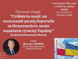 07.11.2025 р. студенти спеціальності Міжнародні відносини, долучилися до лекції професора Вроцлавського університету Ярослава Сирника на тему:«Стійкість нації: як польський досвід боротьби за незалежність може надихати сучасну Україну».