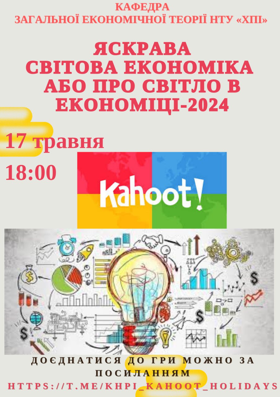 кафедра загальної економічної теорії ННІ ЕММБ запрошує абітурієнтів, школярів та друзів на цікаву гру у Kahoot