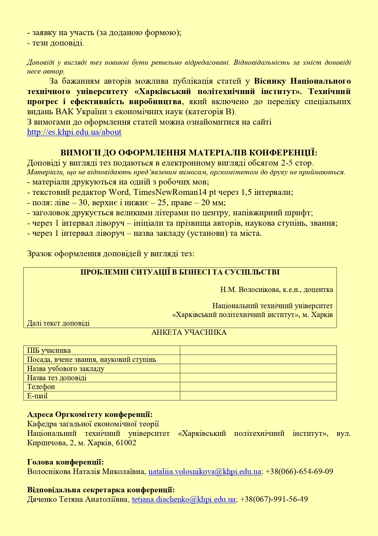 Для участі у конференції необхідно до 20 жовтня 2024 р. надіслати до Оргкомітету електронною поштою на адресу konf.get@khpi.edu.ua: