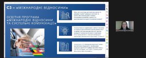 Під час виступу Наталія Волоснікова представила проєкт кафедри «Дипломатична Україна» та наголосила на значенні міжнародних відносин і дипломатії у сучасному світі.