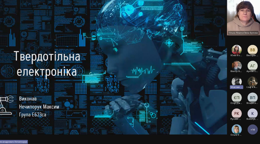 Команди (1–3 учасники) презентували свої доповіді та презентації в PowerPoint, створені протягом семестру за темою «Сучасні напрямки електроніки».