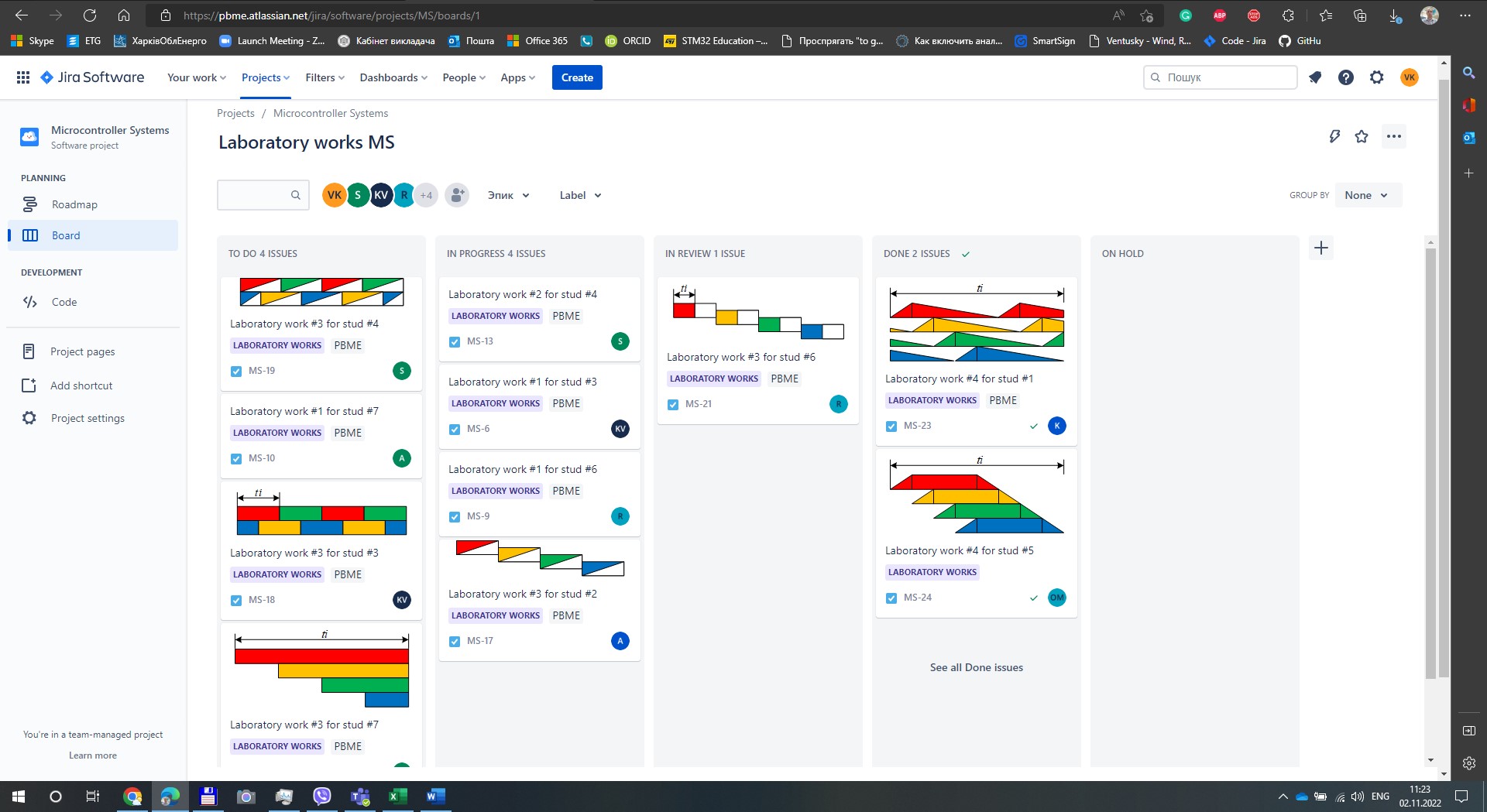 Контроль виконання завдань є досить суттєвим складником учбового процесу і на сьогоднішній час розроблено не одна методика, що забезпечує цю задачу. Останнім часом багато випускників і студентів спрямовують свій вектор навчання саме на ІТ сферу, яка має динамічний розвиток в нашій країні. А отже все частіше навчальні курси, що мають практичну складову з розробки програмного забезпечення потребують організацію як менеджерську складову роботи з проектами. Так за проханням студентів 4 курсу до дисципліни «Мікроконтролерні системи» було додано матеріал по роботі з Atlassian JIRA [посилання на сайт вікіпедії https://uk.wikipedia.org/wiki/Jira], що представляє собою середовище для керування проектами. Використання Atlassian JIRA для роботи з лабораторним практикумом і курсовим проектом дозволяє в повній мірі відслідковувати ступінь виконання задач, що представляють собою окремі лабораторні роботи чи частини курсового проекту. Дають можливість аналізувати час виконання завдань, що в подальшому буде використано для корегування складності завдань та розрахунку кількості годин самостійної роботи необхідної для навчальної дисципліни. Також для повноцінної роботи в режимі онлайн навчання було задіяно веб сервіс для спільної розробки програмного забезпечення GitHub [посилання на сайт вікіпедії https://uk.wikipedia.org/wiki/GitHub]. Це дозволяє повноцінно контролювати виконанні завдання та виправлення помилок, а також дає можливість обміну інформацією між студентами, та спонукає викладачів до розробки більшої різноманітності завдання. А ще постійне використання централізованого сховища дозволяє використовувати розроблені програмні модулі в інших навчальних дисциплінах створюючи послідовність навчальних дисциплін та піднімати навички студентів в практичних знаннях майбутньої професії.