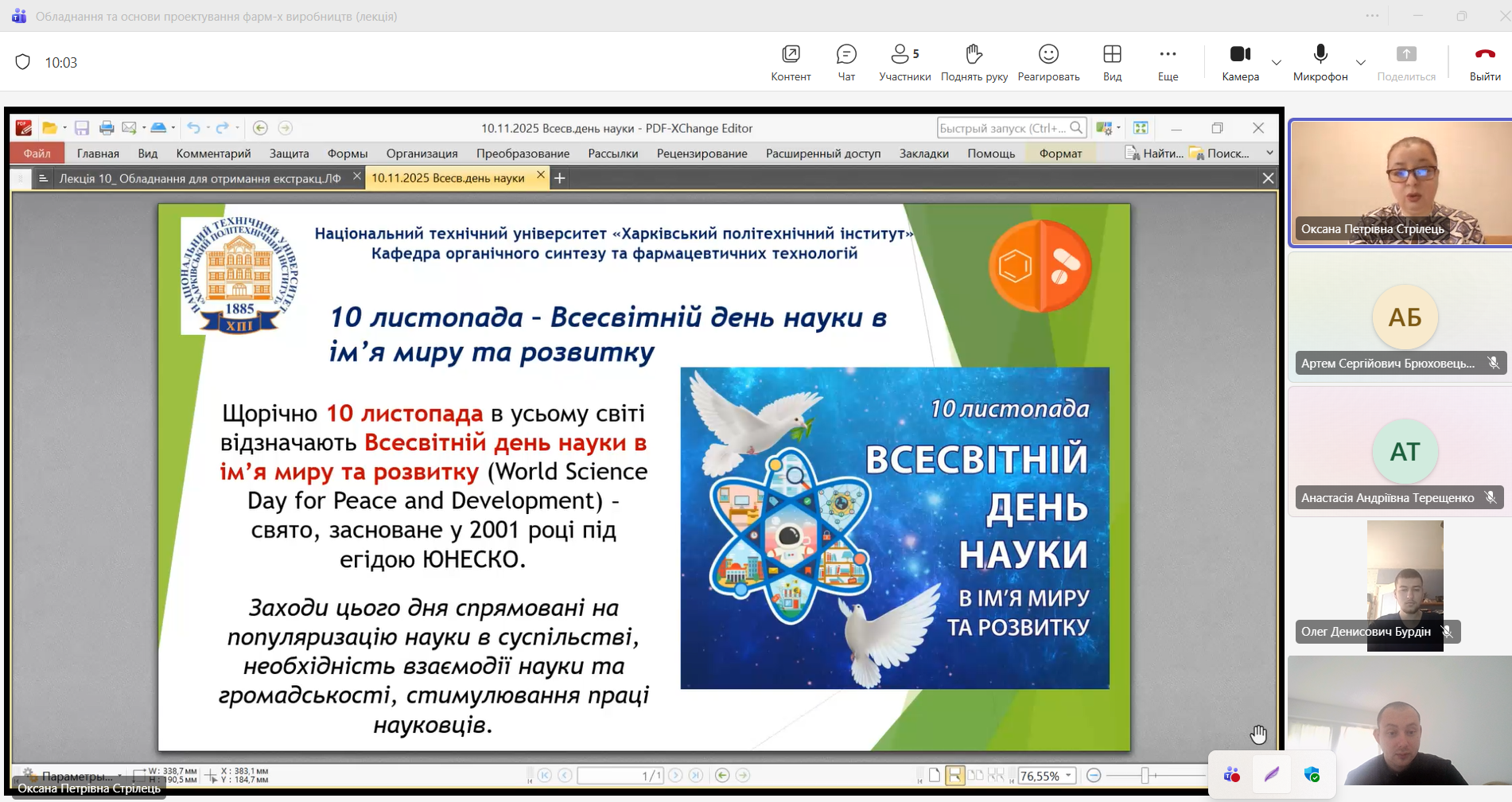 Кураторами груп проведена бесіда щодо Всесвітнього дня науки в ім’я миру та розвитку (World Science Day for Peace and Development), який відзначається щорічно 10 листопада.