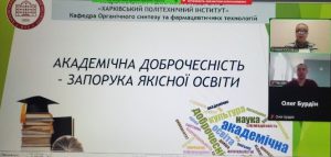 Були розглянути питання визначення академічної доброчесності, нормативні документи НТУ «ХПІ» з академічної доброчесності та антиплагіат-стратегія, відповідальність здобувачів за порушення академічної доброчесності та ін.