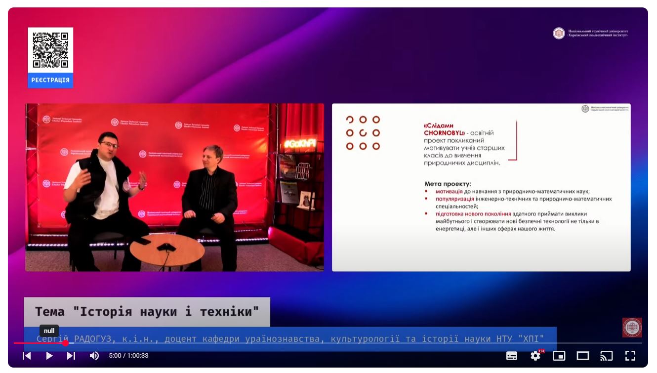 Professor of the department Petrov Serhiy Oleksandrovych became a co-organizer from NTU “KhPI” and the host of the educational and motivational project “In the footsteps of CHORNOBYL”, which was dedicated to the 39th anniversary of the Chernobyl disaster. From April 21 to 24, guests listened to a series of thematic lectures online, and on the 25th, a final Kahoot quiz was held. Based on the results of the events, live broadcasts with lectures were recorded and published on YouTube.