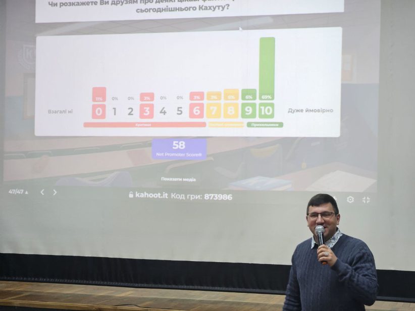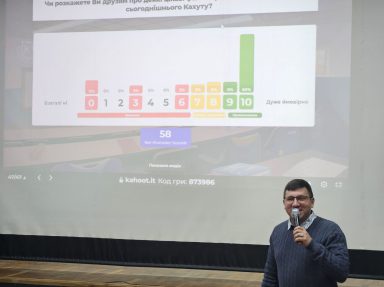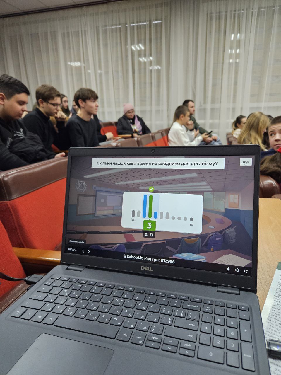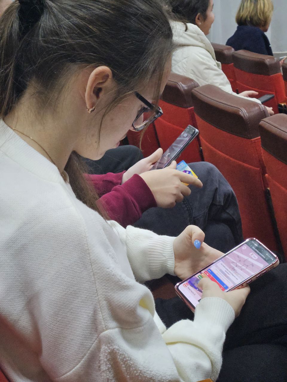 22 листопада професор кафедри органічного синтезу та фармацевтичних технологій НТУ “ХПІ” Петров Сергій Олександрович в місті Кропивницький провів інтерактивну Kahoot-вікторину в рамках зборів “Міського учнівського парламенту м. Кропивницький”. В інтерактивній грі на тему “Хімія шкідливих звичок” прийняло участь більше 50 учнів-представників всіх закладів середньої освіти міста.