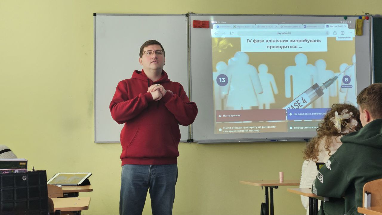 On January 15, Professor Serhiy Petrov of the Department conducted a quiz titled “From Mortar to 3D Printer: Technological Revolution in Drug Development.” The quiz was attended by senior students of Boyko School.