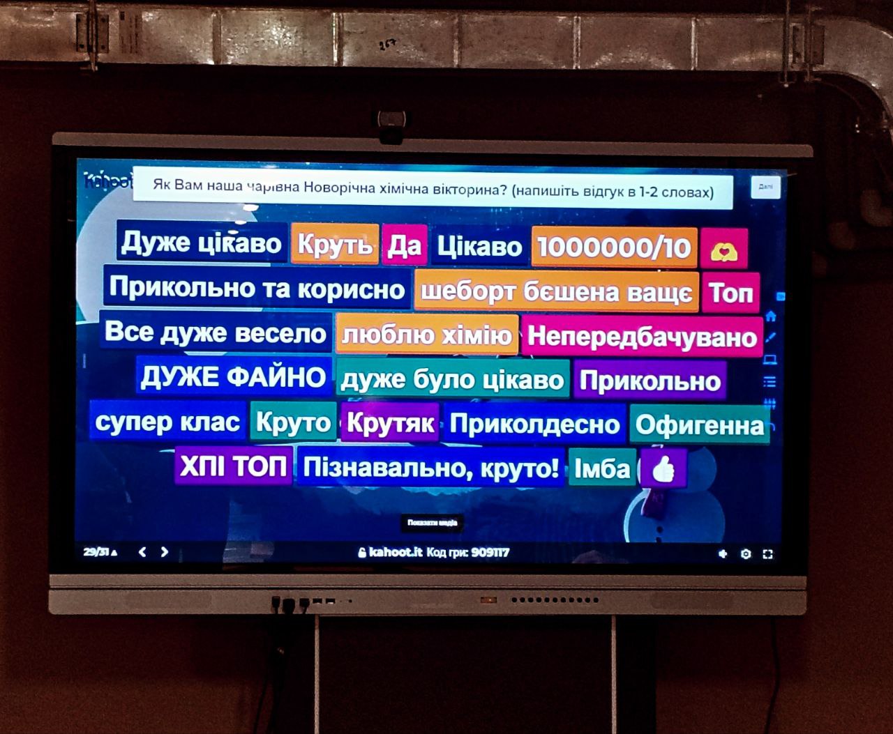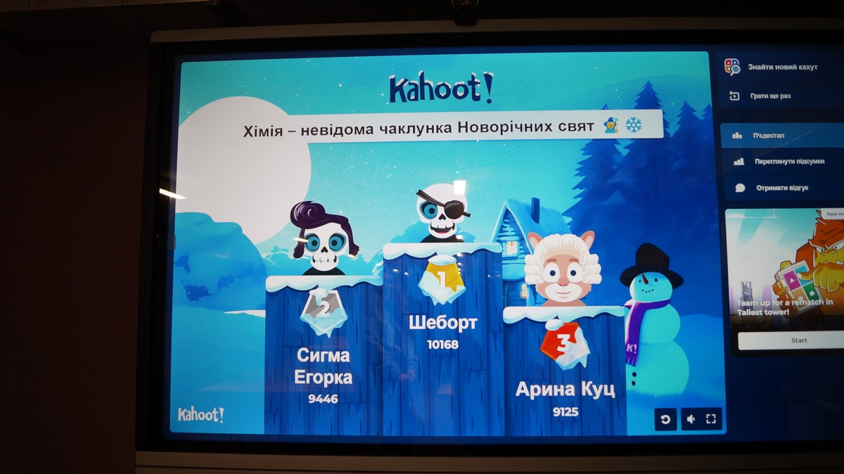 31 січня 2024 року в Харківському науковому ліцеї “Обдарованість” відбулась Kahoot-вікторина на тему “Хімія – невідома чаклунка новорічних свят”. У вікторині прийняли учать 25 учнів 10 класів різних профілів. Ведучим вікторини був професор кафедри Сергій Петров. Нагадаємо, що сама вікторина була розроблена активісткою студентскього наукового товариства кафедри, студенткою групи ХТ-220 Тетяною Савлук. Раніше ця вікторина була апробована онлайн в рамках Зимових канікул з Політехом. На цей раз вікторина проводилась в офлайн в безпекових умовах! І цей формат показав, що застосування методів гейміфікації в освіті по правді є одним з найактуальніших в Свті завдяки максимальній залученості учасників до процесу.
