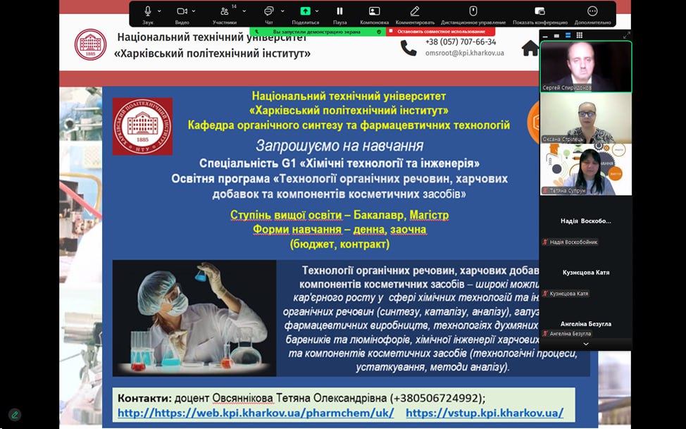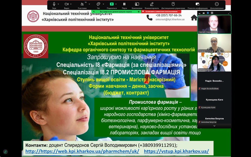 Профорієнтаційний захід на тему перспективності та актуальності спеціальності “Технології органічних речовин, харчових добавок та косметичних засобів” та “Фармація, промислова фармація” з учнями 10 та 11 – х класів лицею № 1, м. Богодухів. 04.12.25. Присутні 28 учнів.