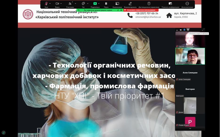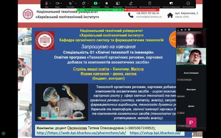 Профорієнтаційний захід на тему перспективності та актуальності спеціальності “Технології органічних речовин, харчових добавок та косметичних засобів” та “Фармація, промислова фармація” з учнями випускних класів Хіміко-технологічного факультету Слов’янського коледжу індустрії та фармації. 20.11.25. Присутні 15 учнів.