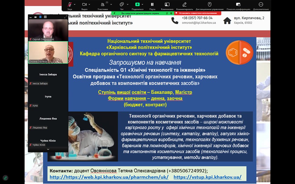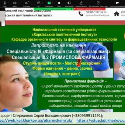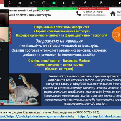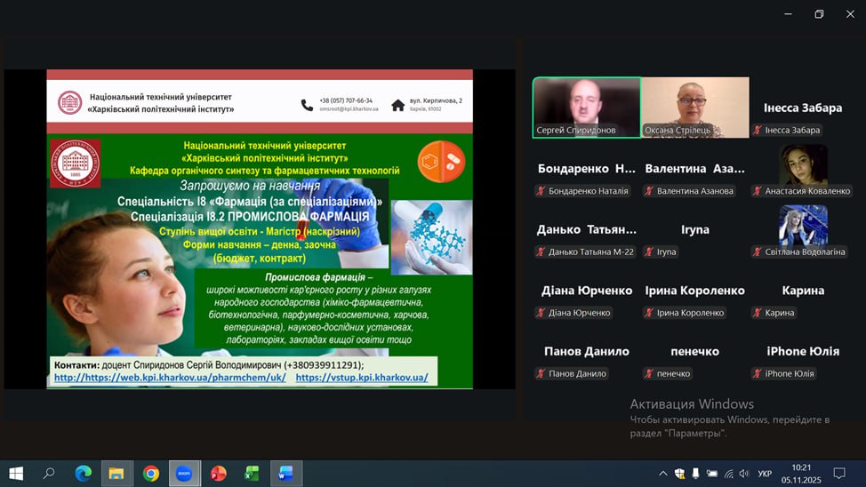 Профорієнтаційний захід на тему перспективності та актуальності спеціальності “Технології органічних речовин, харчових добавок та косметичних засобів” та “Фармація, промислова фармація” з учнями випускних класів Куп’янського медичного коледжу. 05.11.25. Присутні 23 учня.
