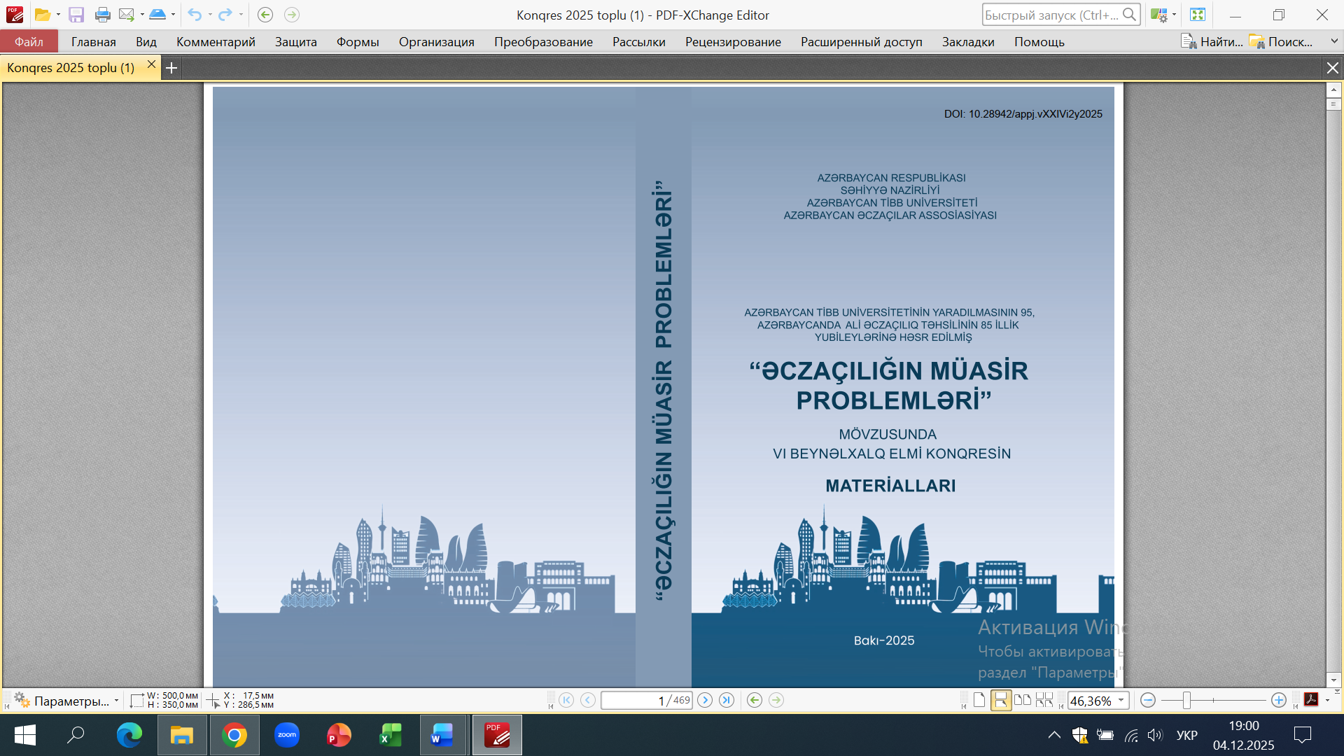 Міжнародний науковий «Сучасні проблеми фармації», присвячений 95-річчю заснування Азербайджанського медичного університету та 85-річчю фармацевтичної освіти в Азербайджані.