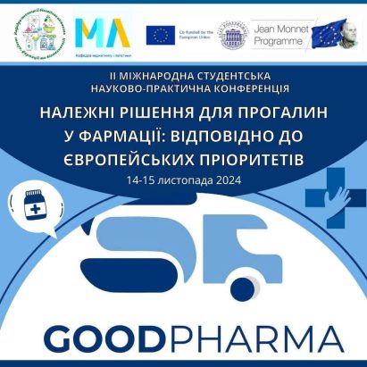 14-15 листопада 2024 року у Національному університеті «Львівська політехніка» відбулася II Міжнародна студентська науково-практична конференція «Належні рішення для прогалин у фармації: відповідно до Європейських пріоритетів» («Good solutions for gaps in Pharmacy: in line with the European priorities») у межах виконання міжнародного освітнього проєкту Erasmus+ Jean Monnet 101085257 GoodPharma.
