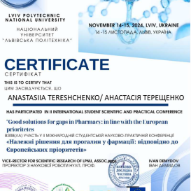 Участь у II Міжнародній студентській науково-практичній конференції «Належні рішення для прогалин у фармації: відповідно до Європейських пріоритетів»