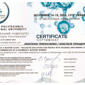 В рамках конференції було проведено майстер-клас від  Голови  Львівського  підрозділу  Всеукраїнської  асоціації перекладачів жестової мови і людей з інвалідністю  на  тему: «Інклюзивні рішення для  людей  з  порушенням  слуху  або  Як  порозумітись  в  аптеці  без  слів»  Олени ЧЕРНИШОВОЇ.
