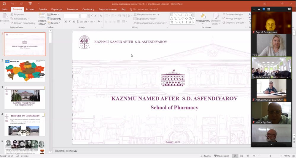 20.11.23 кафедрою Загальної фармації під керівництвом к.ф.н. Грубника І.М. при навчально-науковому медичному інституті НТУ «ХПІ» був проведений телеміст з викладачами та студентами Казахського Національного медичного університету им. С.Д. Асфендіярова, г. Алматы, Республика Казахстан, в якому приймали безпосередню участь викладачі кафедри ОСФТ та студенти спеціальності «226 Фармація. Промислова фармація».