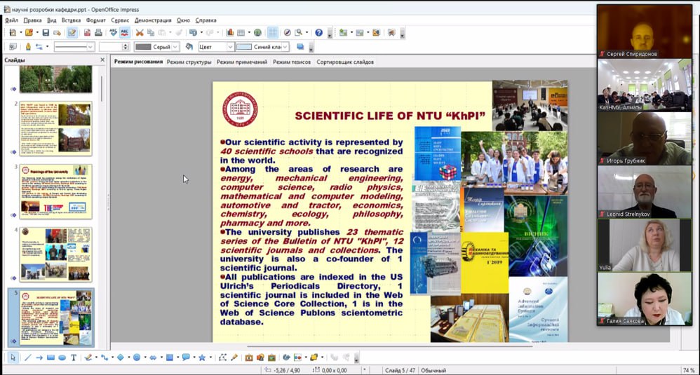 На заході була дана інформація щодо сьогодення КазНМУ им. С.Д. Асфендіярова та НТУ «ХПІ», розглянуті основні напрямки спільної наукової роботи та співробітництва.