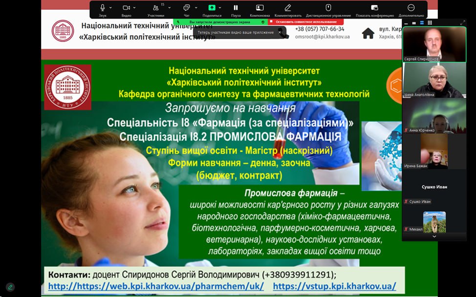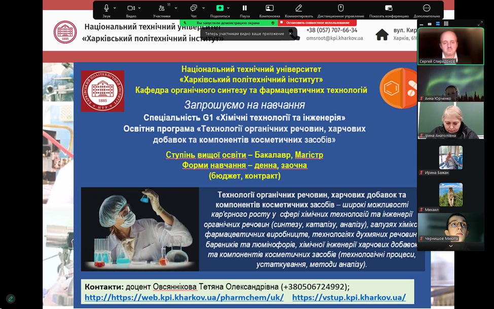 Профорієнтаційний захід на тему перспективності та актуальності спеціальності “Технології органічних речовин, харчових добавок та косметичних засобів” та “Фармація, промислова фармація” з учнями 10 та 11 – х класів лицею № 174, м. Харків. 28.11.25. Присутні 18 учнів.