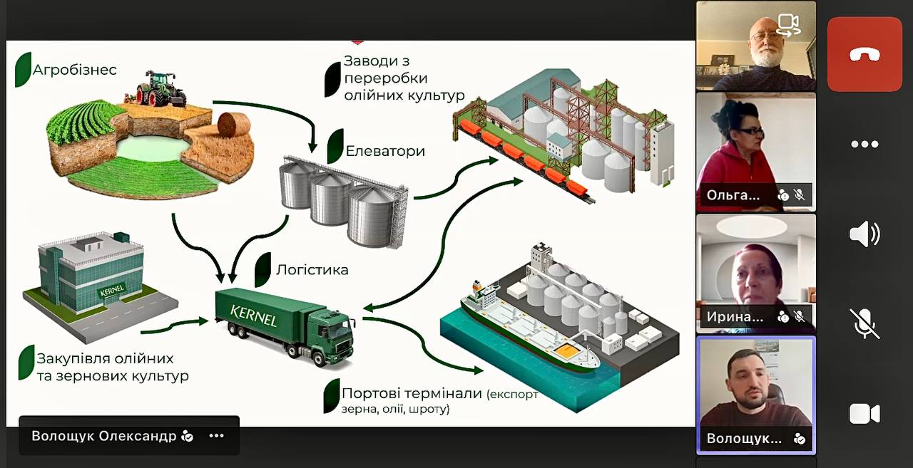 8 квітня 2026 року відбулася зустріч студентів і співробітників кафедри з провідними фахівцями компанії Kernel: Волощук Олександр – головний технолог департаменту зберігання; Солдатова Анастасія — фахівець з управління знаннями виробничих активів компанії. Компанія Kernel найбільший український агрохолдинг, провідний світовий виробник та експортер рослинної олії. Компанія працює під брендами «Щедрий Дар», «Стожар» та «Чумак Золота», експортує олії та зерно по всьому світу.