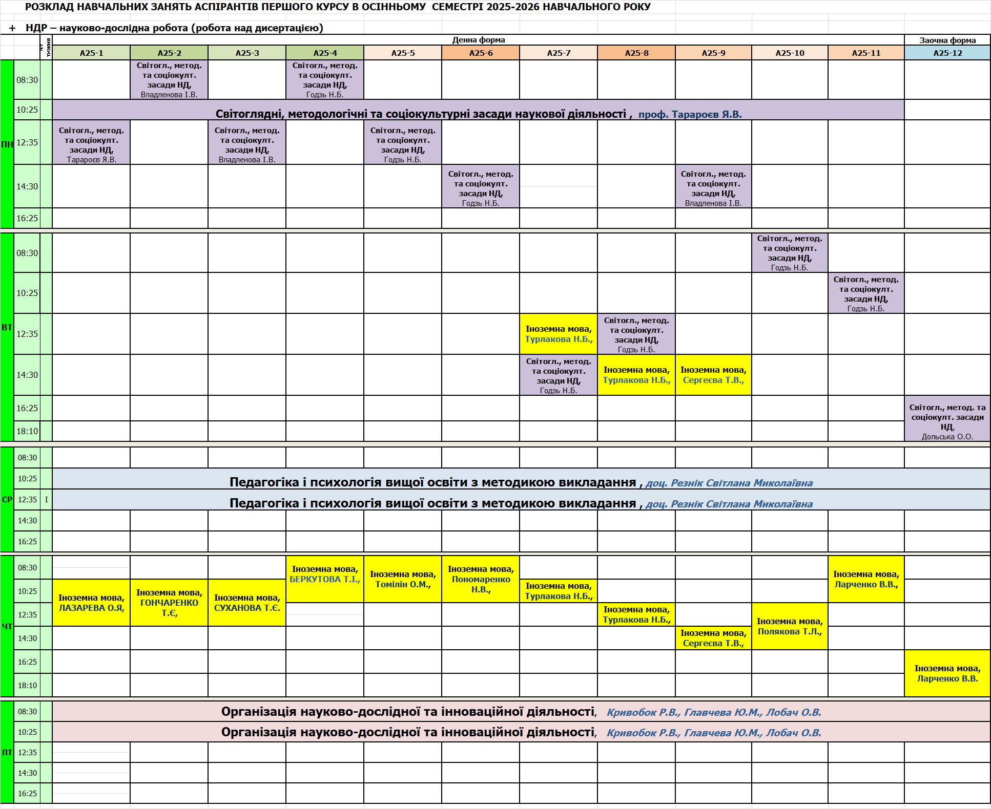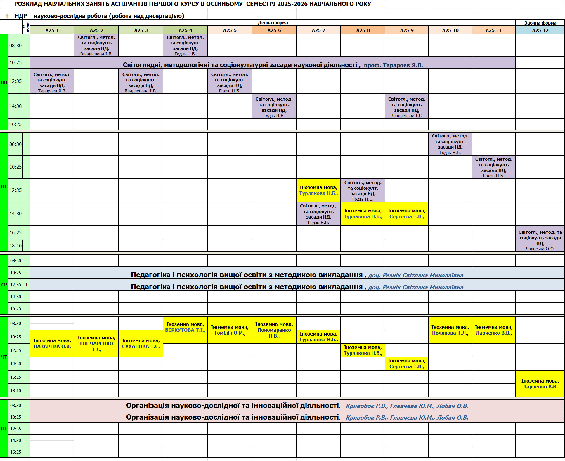 Початок занять 01 жовтня 2025 року за розкладом І-тижня