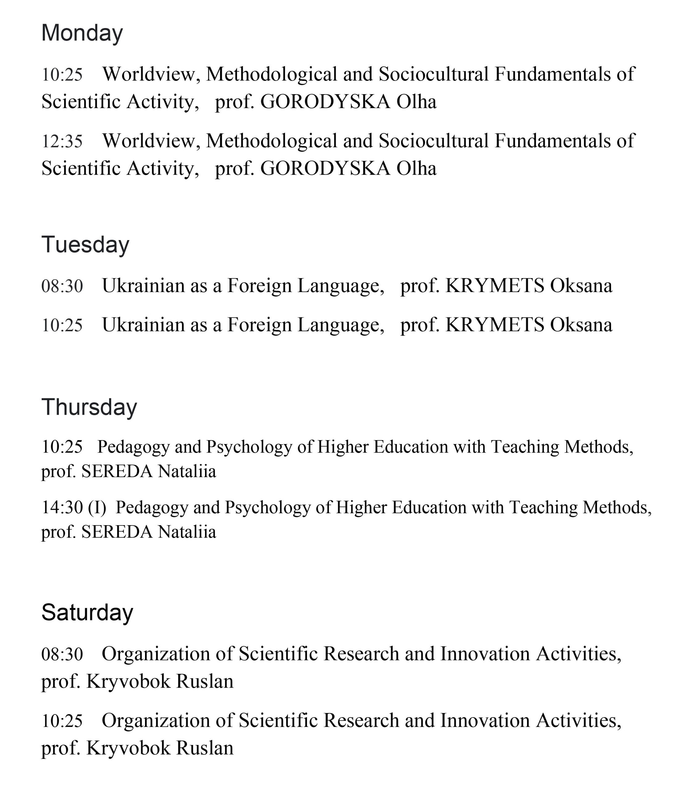 Початок занять 02 жовтня 2023 року за розкладом 2-го тижня