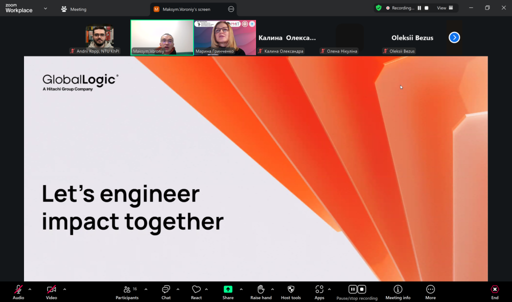 17 грудня 2025 року на кафедрі управління проєктами в інформаційних технологіях НТУ «Харківський політехнічний інститут» відбулася онлайн-зустріч зі Senior Solution Architect компанії GlobalLogic, Максимом Вороним, який також є доцентом кафедри.