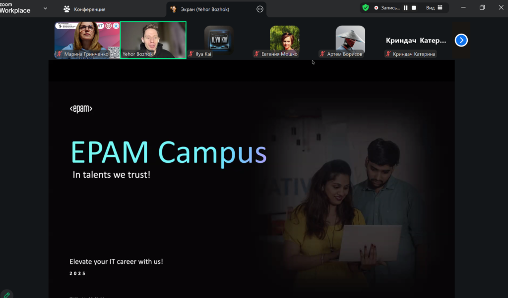 The event addressed key issues related to the professional development of future IT specialists, including the development of essential skills during studies, specifics of starting a career, common beginner mistakes, and ways to avoid them. Special attention was paid to EPAM Campus educational programs, which are designed for school students and university students and enable them to gain practical experience and prepare for future employment.