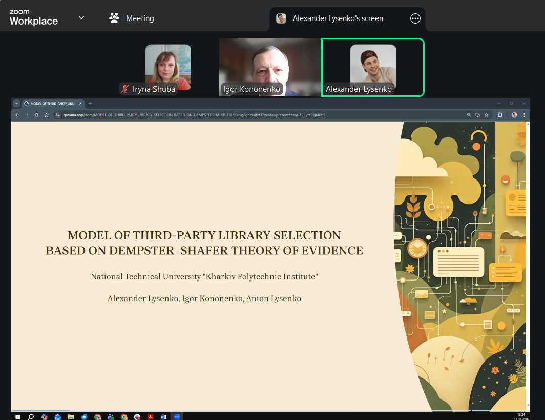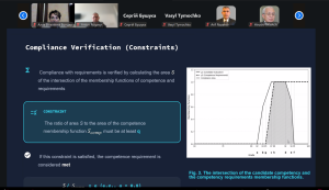 Професор кафедри управління проєктами в інформаційних технологіях НТУ «ХПІ» Ігор КОНОНЕНКО у своїй доповіді звернув увагу на те, що оцінювання кандидатів до проєктної команди, так само як і студентів, відбувається в умовах значної невизначеності. Тому точкові оцінки, які набули загального розповсюдження, насправді не відповідають реальним умовам. Більш адекватним є використання нечітких інтервалів. У роботі показано, як такі оцінки використати для формування проєктної команди з врахуванням не тільки технічних компетентностей, але й здатності виконувати певні ролі та персональних якостей кандидатів.