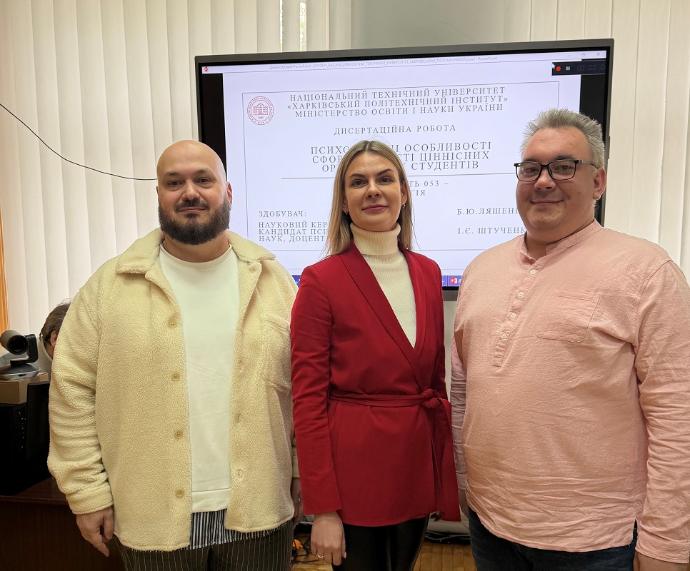Перший захист став знаковою подією для кафедри. Здобувач Богдан Ляшенко успішно представив дисертаційне дослідження, присвячене ціннісним орієнтаціям студентської молоді в умовах суспільних змін. Тематика роботи є актуальною та має вагоме значення як для розвитку психологічної науки, так і для розуміння сучасних трансформацій у молодіжному середовищі.